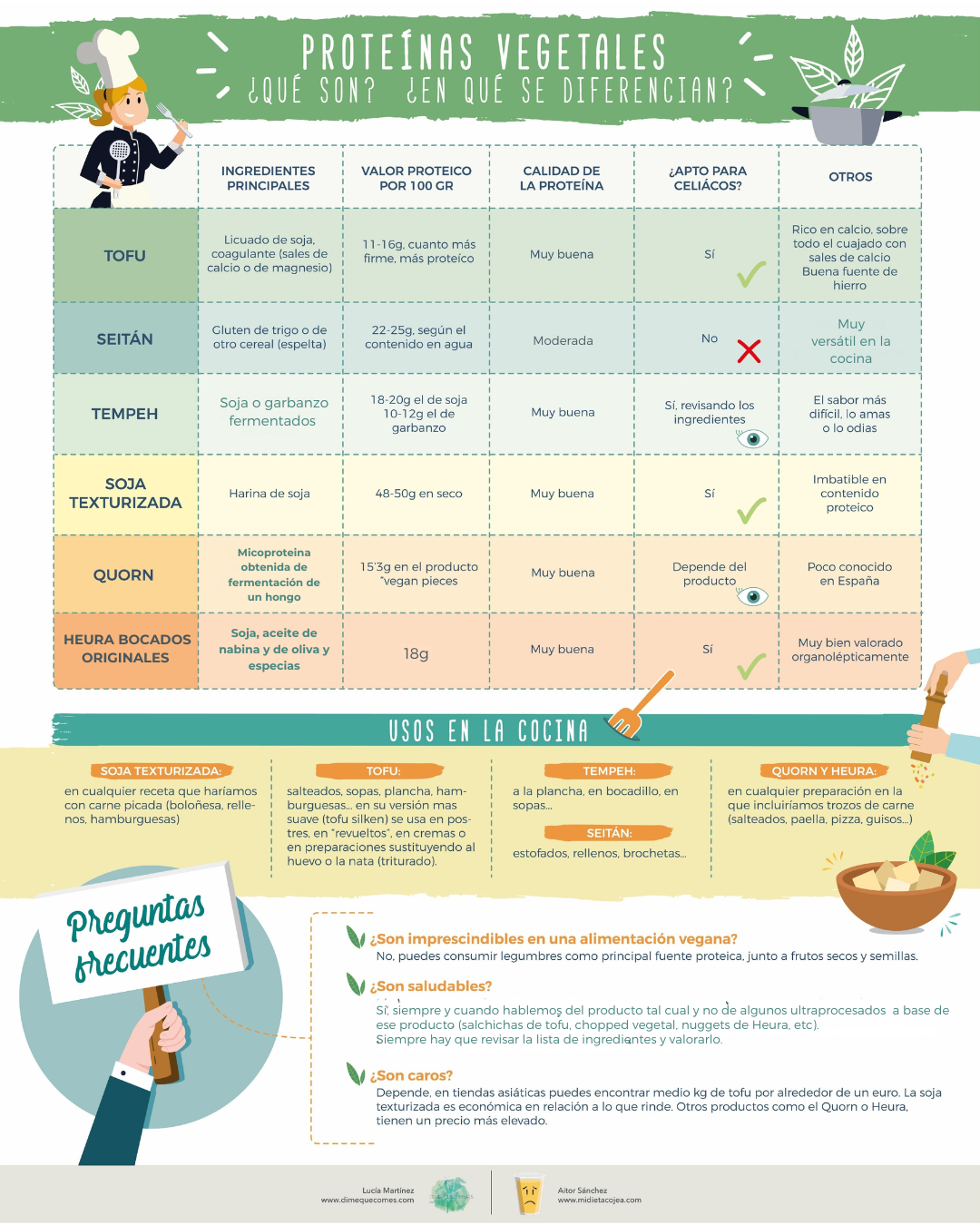 En esta nueva infografía hacemos un repaso a los principales productos vegetales proteicos, además de las legumbres, semillas y frutos secos.